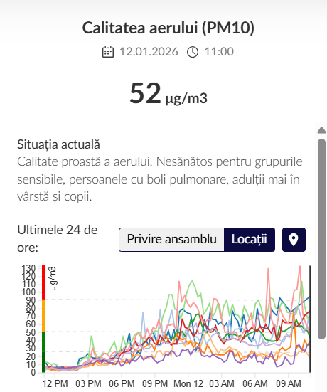 - PM10 rămâne prezent, în special în zonele cu trafic