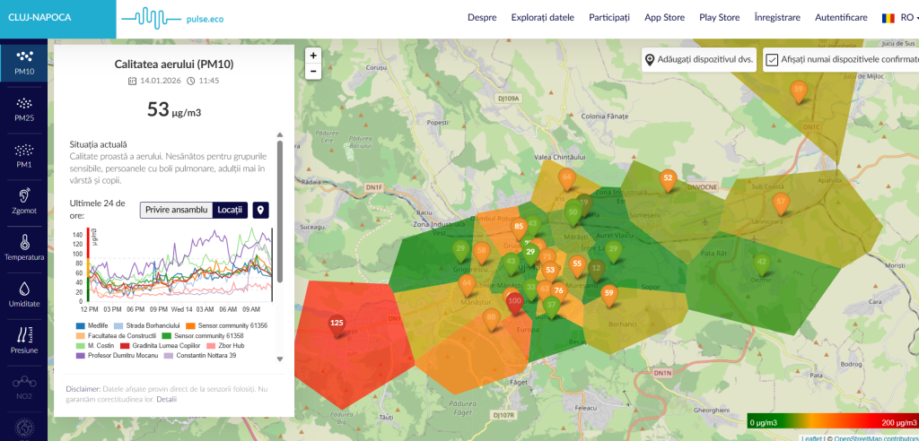 Cele 2 platforme (https://cluj-napoca.pulse.eco/ și https://cluj-napoca.aqi.eco/) ne ajută să înțelegem cum și ce respirăm în Cluj Napoca.