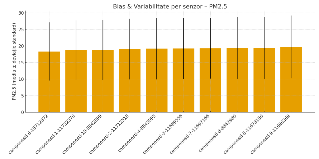 Diferența maximă între senzori la PM2.5: doar 1.38 μg/m³