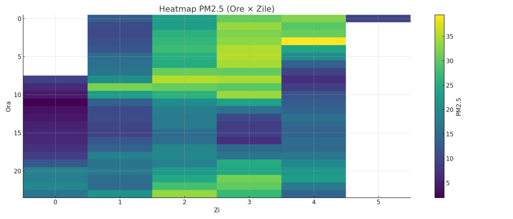 Acest heatmap arată tiparul diurn al poluării: