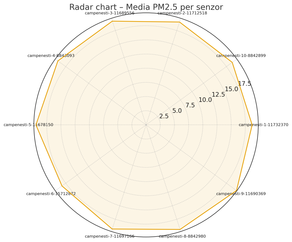 7. Radar Chart – Media PM2.5 per senzor
